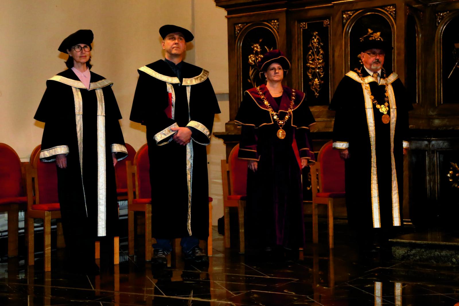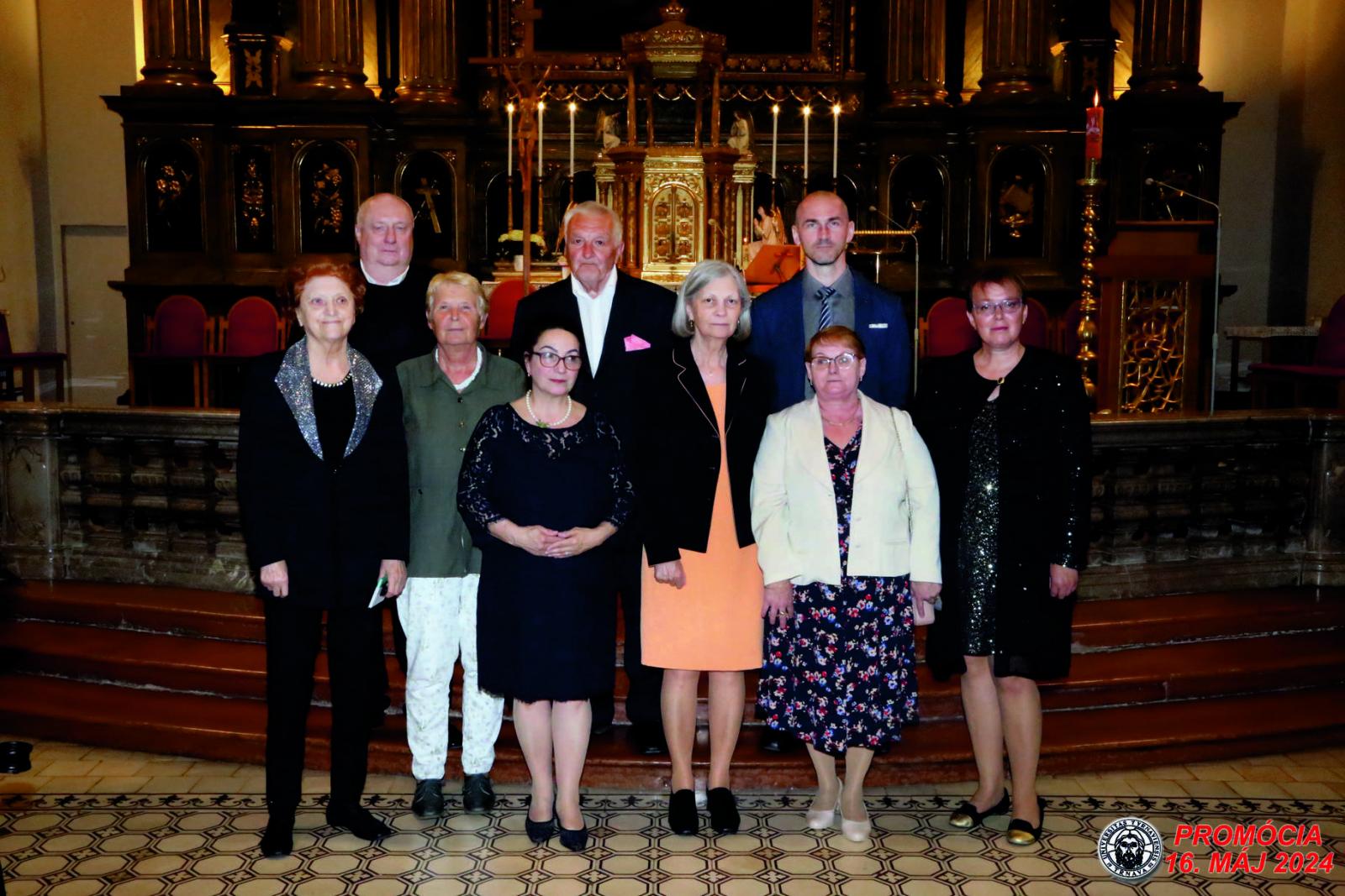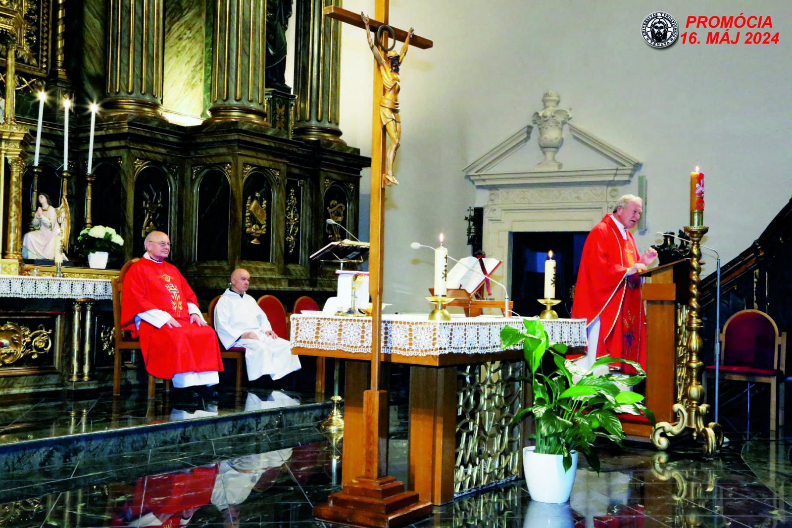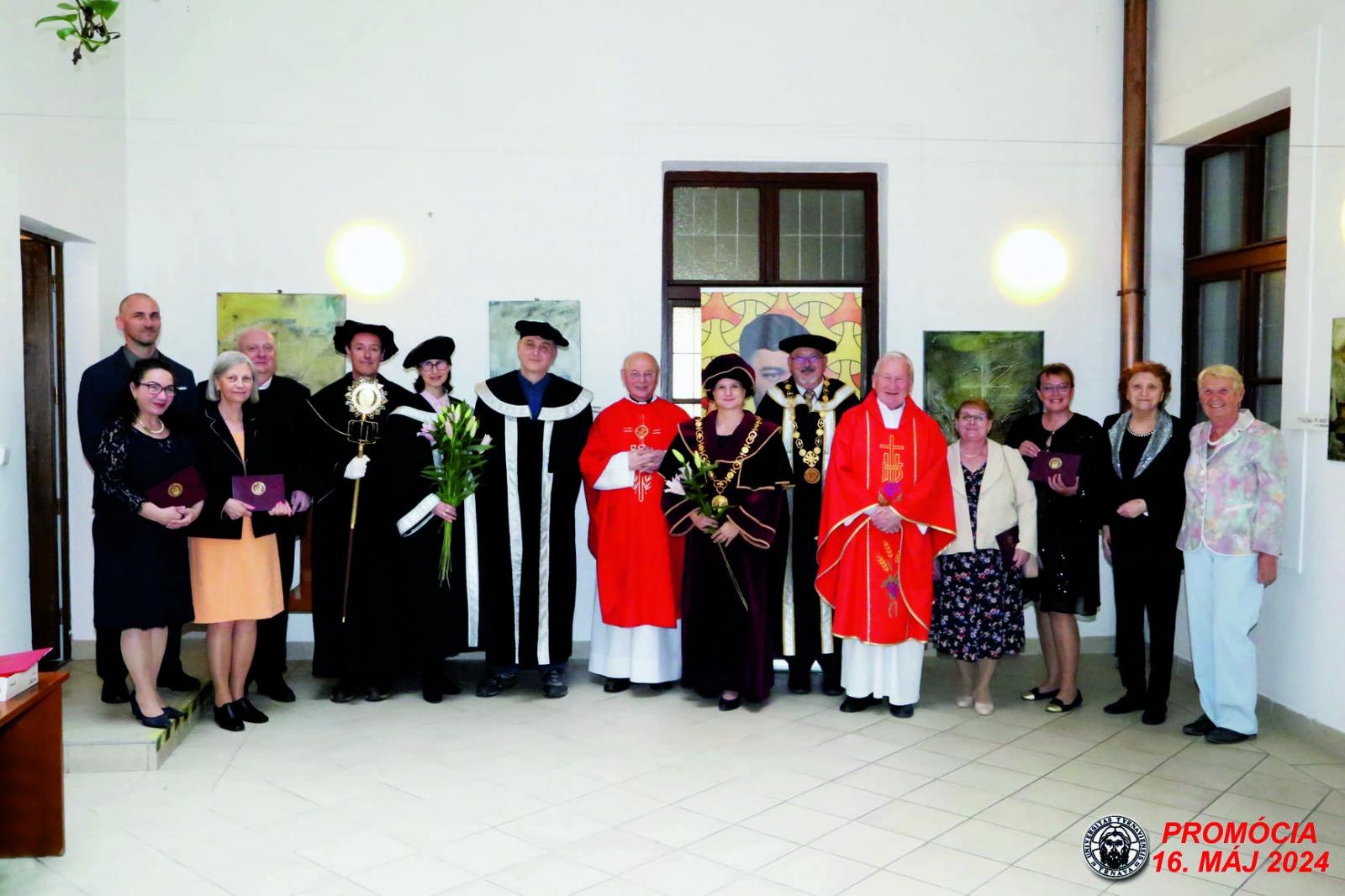 Slávnostná promócia absolventov štúdia systematickej teológie bola spojená so svätou omšou v jezuitskom kostole. Slávnosť viedla prorektorka doc. Masaryková spolu s dekanom fakulty prof. Šmidom, prodekanom doc. Tiňom a dr. Hidvéghyovou. Za študentov sa pedagógom poďakovala pani Poláková.